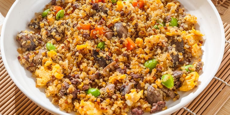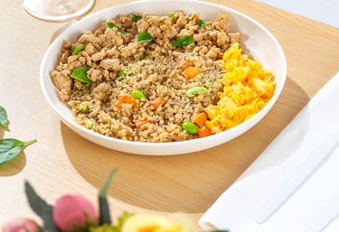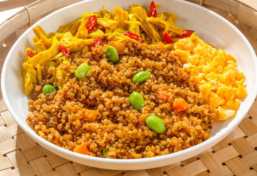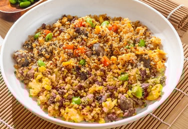 Nasi goreng quinoa gurih khas Jepang, dengan lean beef dan topping variatif. Rendah kalori, rasa autentik.